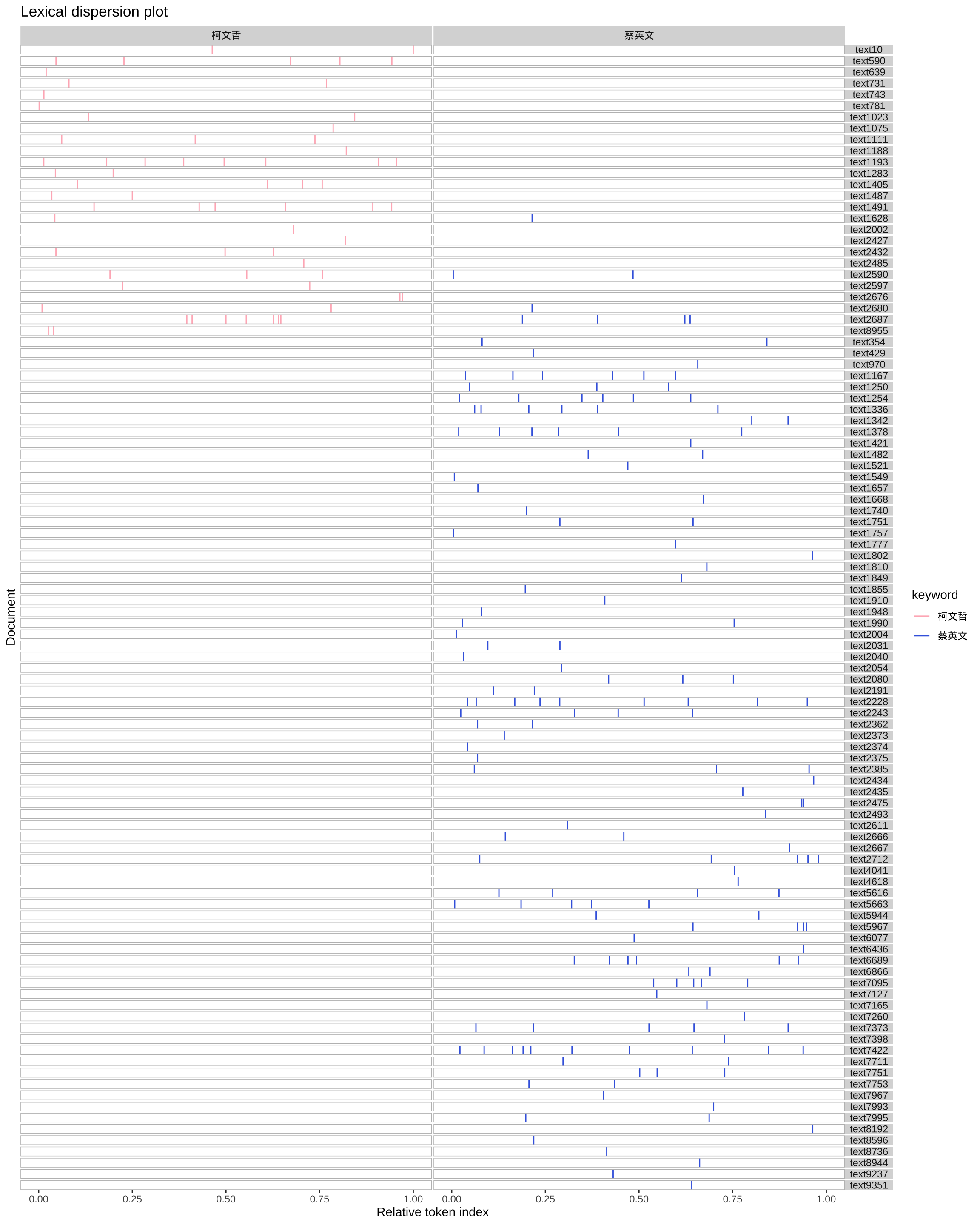 [25] "台灣民眾" "黨" "主席" "台北" "市長" "柯文"